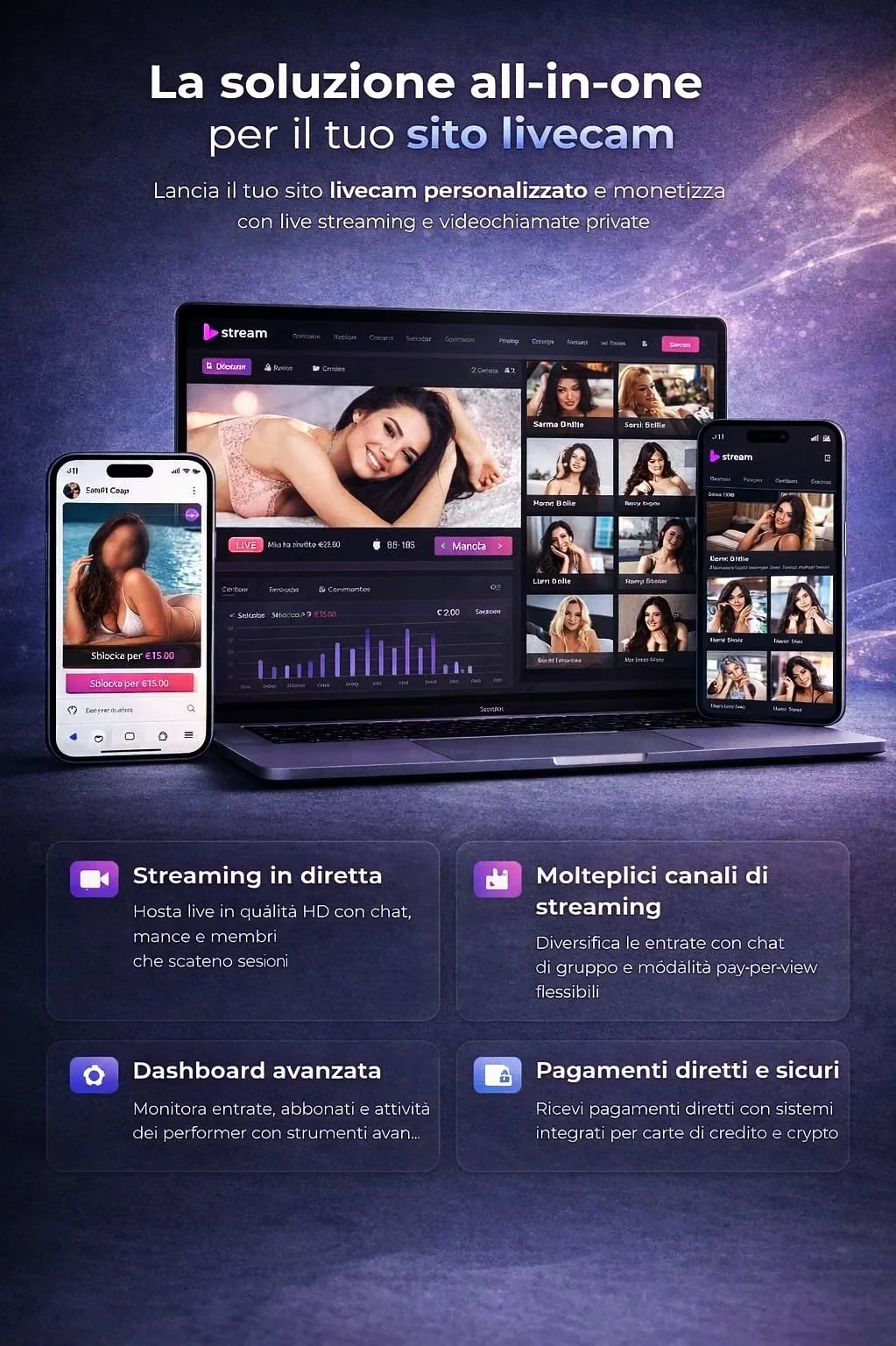 streaming e community digitali, con strumenti avanzati di monetizzazione, gestione utenti e sicurezza