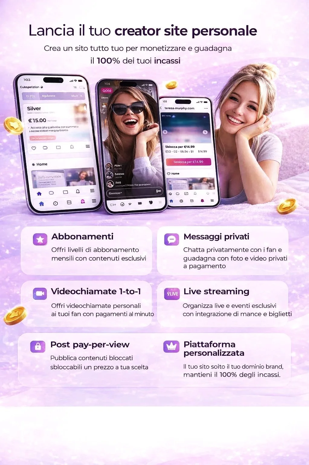 È una soluzione ideale per creator, coach, influencer e professionisti che vogliono gestire il proprio business digitale in modo indipendente.