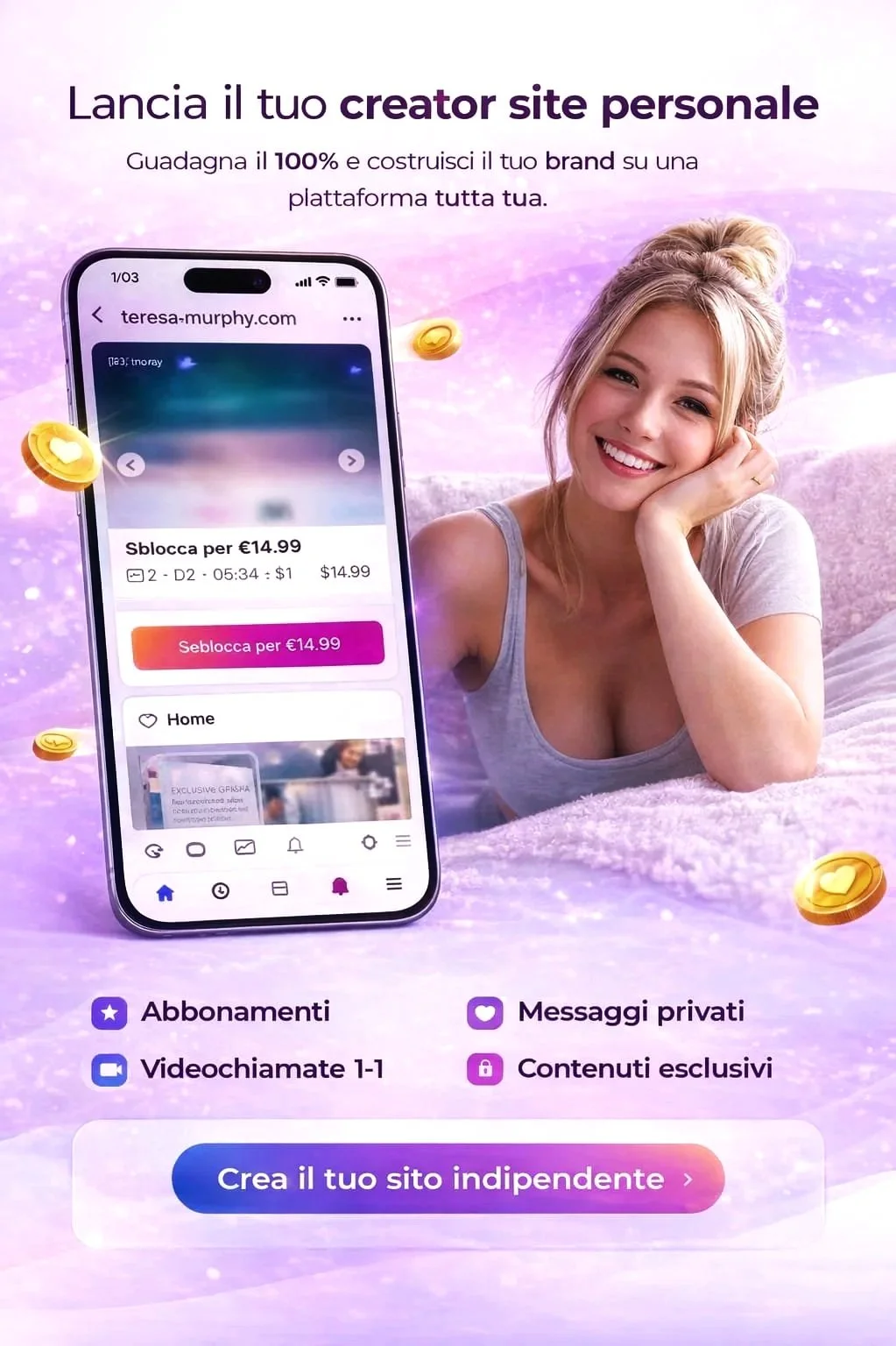 Permette di monetizzare attraverso appuntamenti, consulenze online, abbonamenti e contenuti esclusivi.